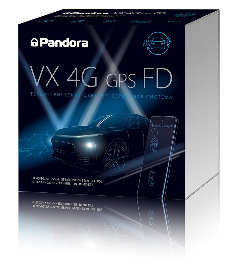 Pandora VX 4G GPS FD - первая автомобильная противоугонная система в серии VX с поддержкой самых современных цифровых автомобильных шин CAN FD, значительно расширяющая доступность функций дистанционного запуска двигателя и управления климатом для самых современных авто, а встроенный GPS-модуль позволяет отслеживать местоположение в реальном времени.
