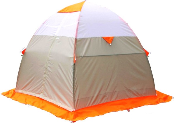 Двухслойная зимняя палатка, рассчитанная на 1-2 человек со всей экипировкой. Наружный тент изготовлен из материала Oxford с полиуретановой пропиткой. Внутренняя часть отделана смесовой тканью. Это дышащий материал, хорошо пропускает воздух и препятствует образованию конденсата.